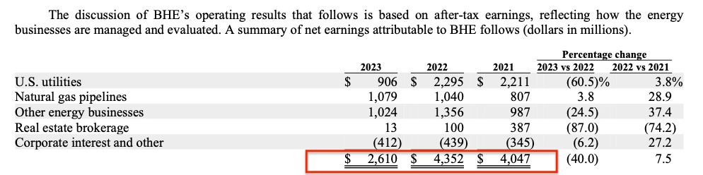 Berkshire Hathaway’s large energy group was another weak area in 2023 due to litigation costs associated with western wildfires in recent years as well as sharply lower results in the company’s real estate brokerage operations: