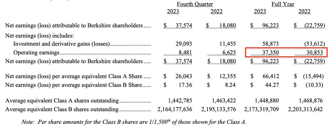 I plan to get into the “weeds” on the details of Berkshire’s 2023 results this week. These articles will be for paid subscribers, most likely with a brief free introduction.