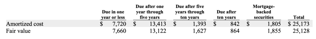Although Berkshire’s fixed maturity portfolio is very small, it is still worth taking a look at its composition and how it is accounted for. The following exhibit shows the category of securities in the portfolio at the end of 2022: