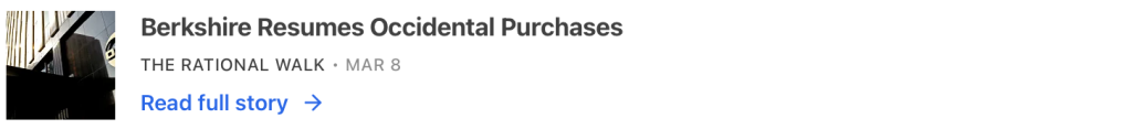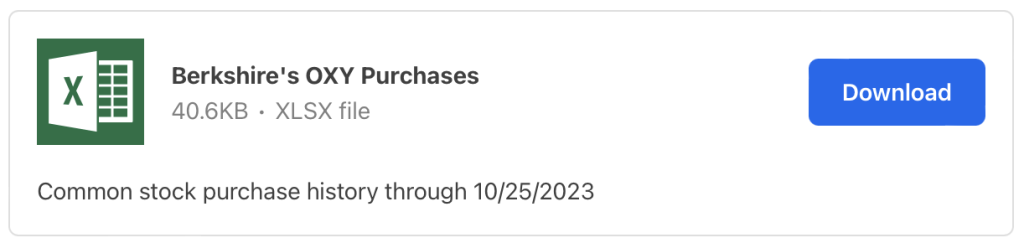 In the past, I shared a spreadsheet which tracks all of Berkshire’s positions in Occidental Petroleum and I’m attaching an updated Excel spreadsheet for paid subscribers at the end of this article since readers have told me that this is useful.