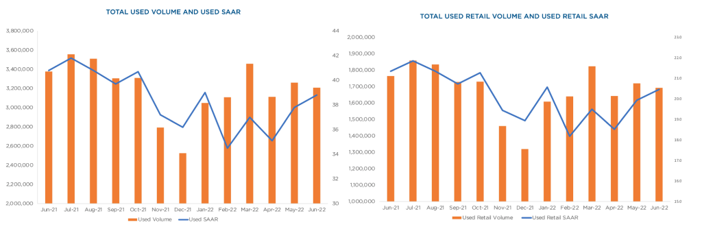 Used car sales volume has decreased recently. There were 38.2 million used vehicles sold between July 2021 and June 30, of which 20.1 million vehicles were sold at retail. On a seasonally-adjusted annualized basis, the pace of sales in June was 38.8 total used vehicle sales and 20.5 million retail used vehicle sales.11