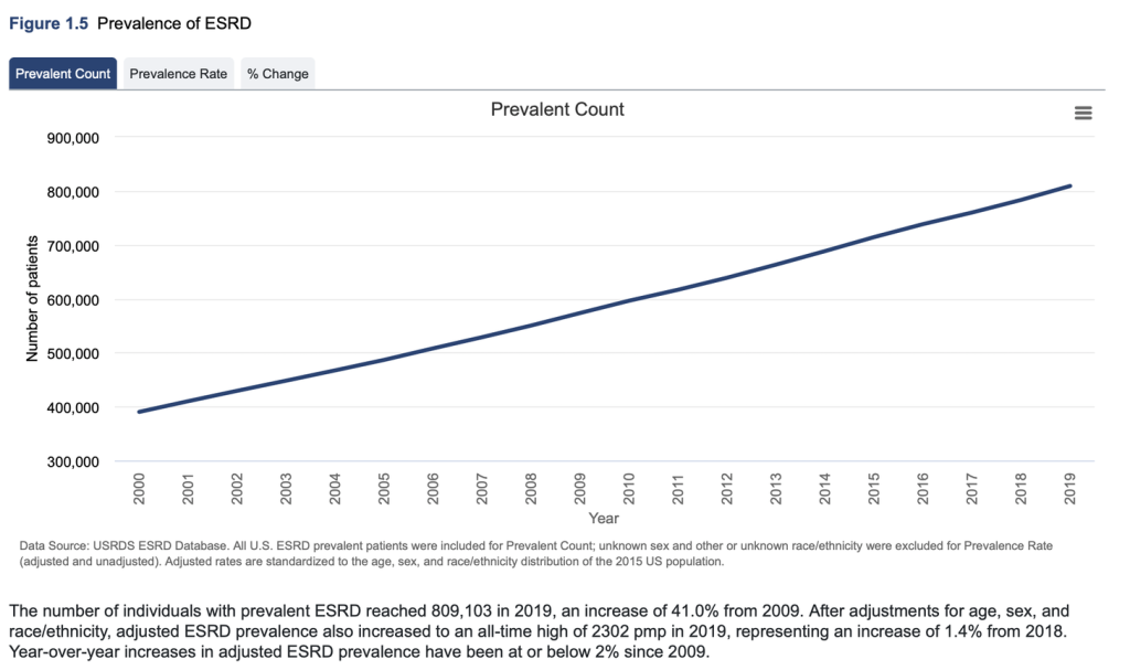 To say that we have an epidemic of ESRD in the United States is no exaggeration. From 2009 to 2019, the number of ESRD patients skyrocketed by 41 percent.