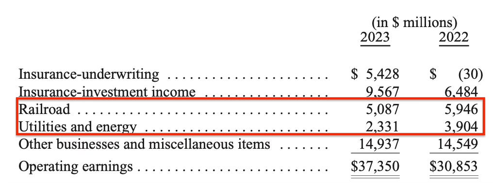 I plan to review the results of BNSF and BHE in detail later this weekend and when these companies release their own annual reports early next week. Warren Buffett highlighted their weak performance in the letter because he had expressed optimism about their results at the 2023 annual meeting. Instead, both businesses posted much weaker operating results than in 2022:
